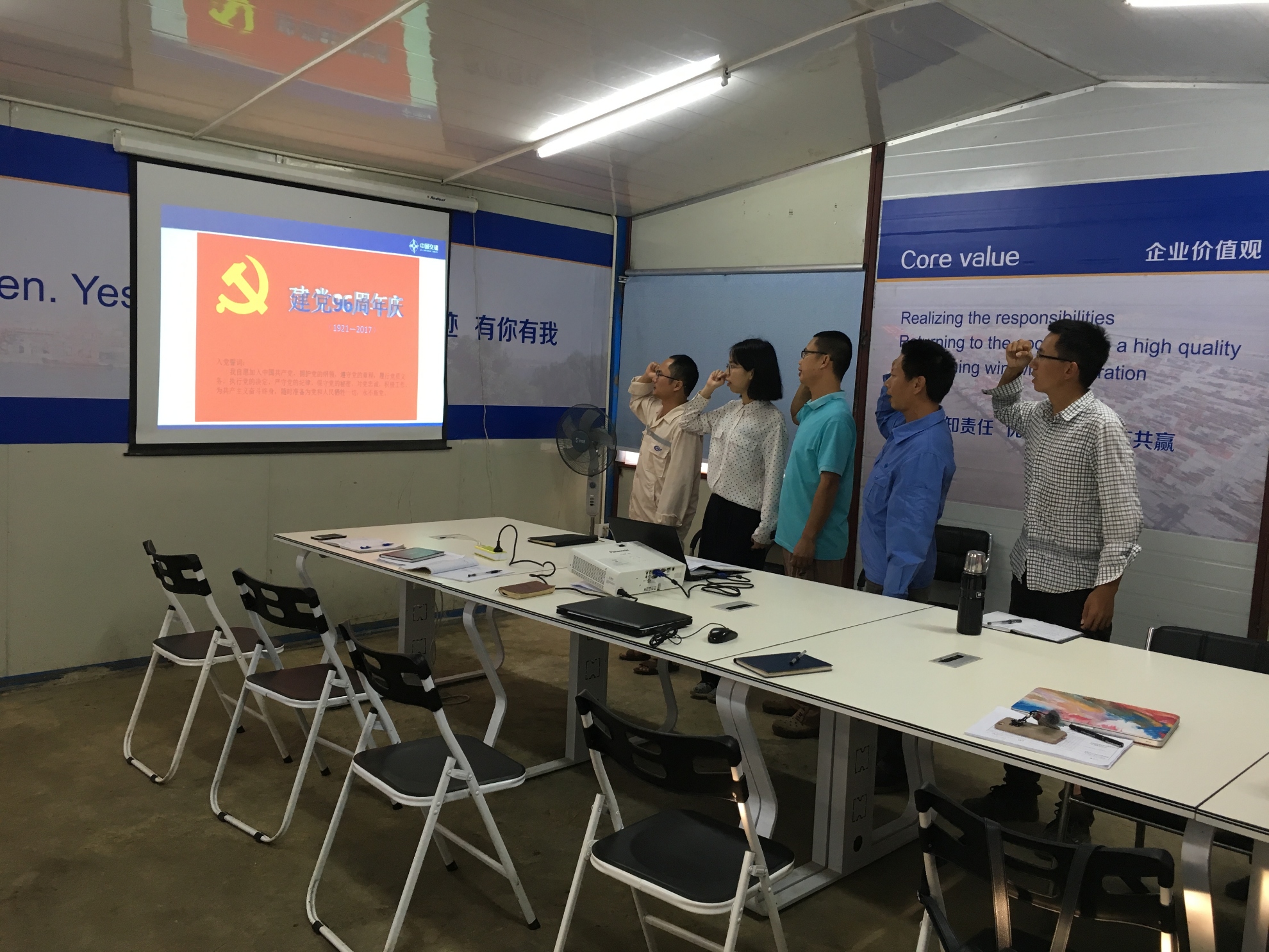 所罗门群岛项目党支部结合海外工作实际,认真研究制定活动计划,灵活组织开展了重温入党誓词、“两学一做”知识竞答、“两学一做”学习教育暨党员作用发挥座谈会等活动内容。通过灵活开展“七一”主题党日活动,深化广大党员职工对党的正确认识,自觉把崇高的理想信念与肩负的神圣使命结合起来,以勤奋务实的工作作风,奋发进取的工作热情,助力项目部年度产值的完成及公司海外市场的开拓。