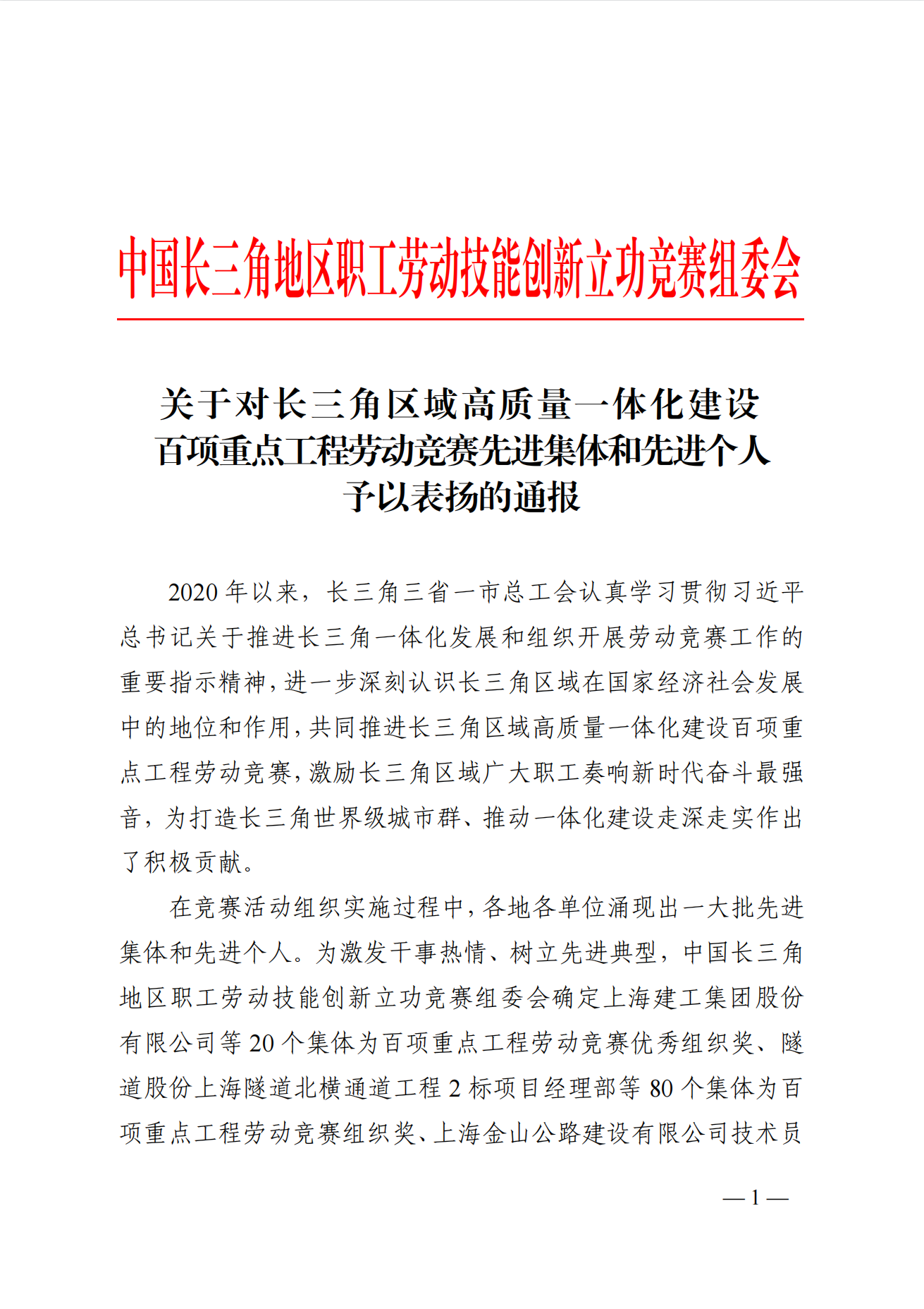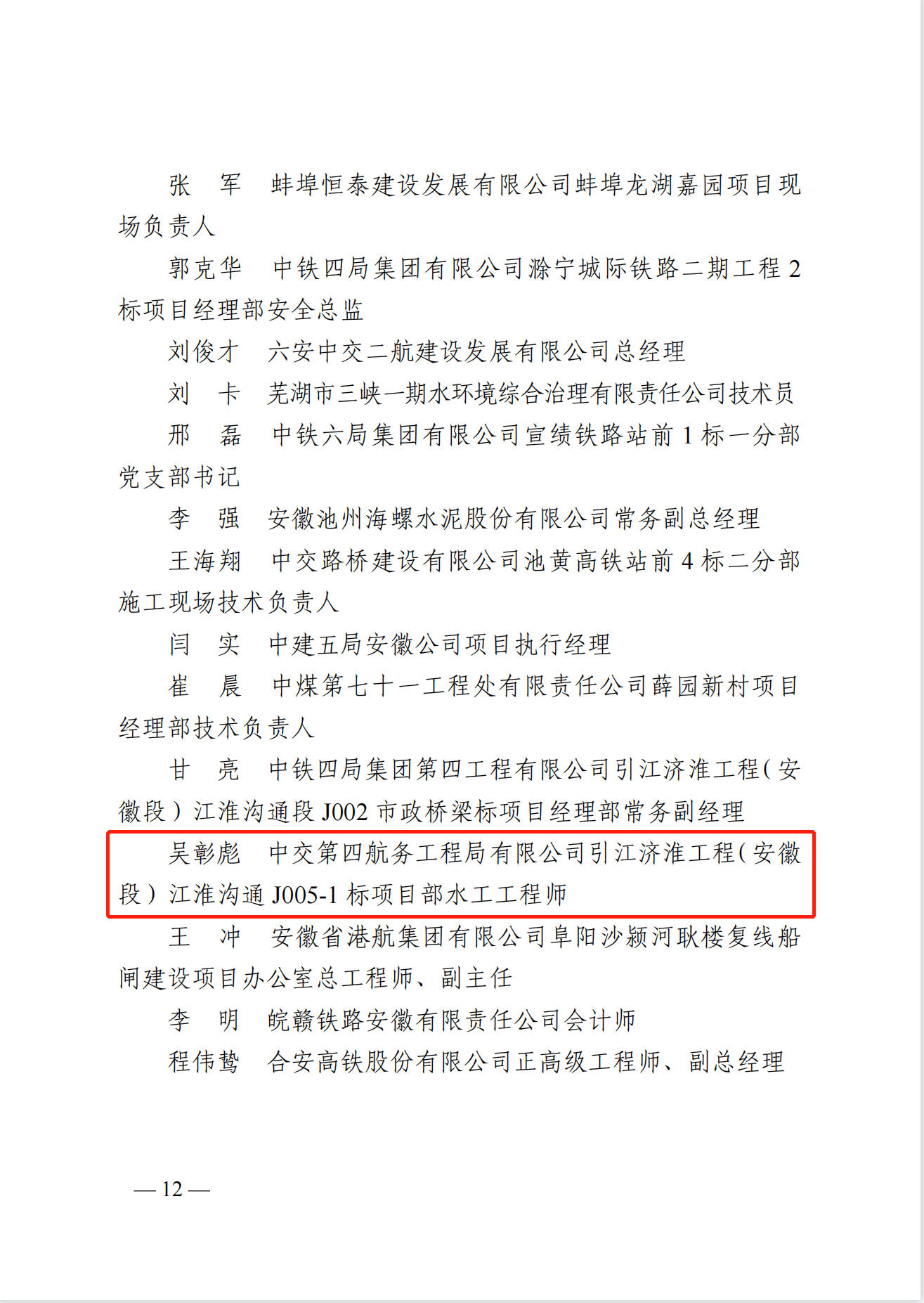 近日,中国长三角地区职工劳动技能创新立功竞赛组委会对长三角区域高质量一体化建设百项重点工程劳动竞赛先进集体和先进个人进行表彰,公司参建的引江济淮工程(安徽段)江淮沟通 J005-1 标项目部吴彰彪同志获评先进个人。