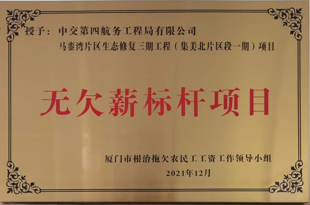 近日,厦门市集美区建筑领域“无欠薪标杆项目”授牌仪式在集美区人力资源和社会保障局召开,公司马銮湾片区生态修复三期工程(集美北片区段一期)项目获此殊荣。