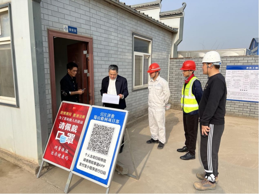 3月16日,安徽省引江济淮集团董事长张效武到安徽引江济淮蜀山枢纽项目检查疫情防控工作,合肥建管处处长王同如陪同检查。