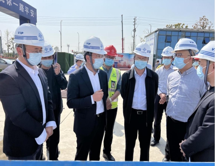 4月7日,宁波市奉化区委副书记、区长魏建根,区委常委、常务副区长李春泉一行到中交未来城方桥安置房项目调研指导,中交城投宁波分公司总经理刘涛,党总支书记曹国荣等陪同。