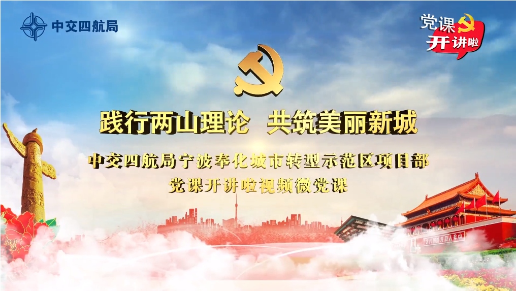 2005年8月,时任浙江省委书记的习近平同志到浙江省安吉余村考察时提出了“绿水青山就是金山银山”的科学论断。党课以此引入,总体阐释“两山”理论的重要意义,结合四航局参建的宁波奉化城市转型示范区(中交未来城)项目近五年来的建设历程、具体实践,诠释共同绘就践行“两山”理论、共筑美丽新城的愿景和成效。