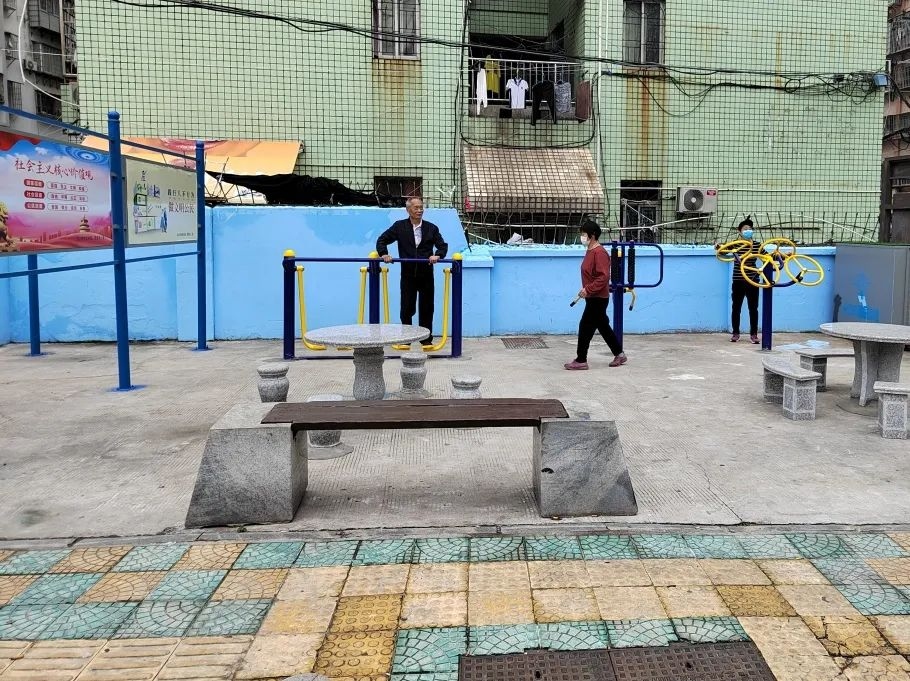 在改造前,东浦公寓门口的空地上到处堆放着垃圾和杂物,导致该小区的环境脏乱差,影响市容和居民生活质量。为改变现状,厦门片区项目党支部与龙山桥社区党委达成一致,因地制宜制定了一系列方案,反复商讨门口空地的提升改造事宜并进行施工。在厦门思明区污水“两高”项目部的施工改造下,空地划分出晾晒区、宣传栏、休闲区、健身区等区域,为居民提供了生活便利、休闲和健身场所。