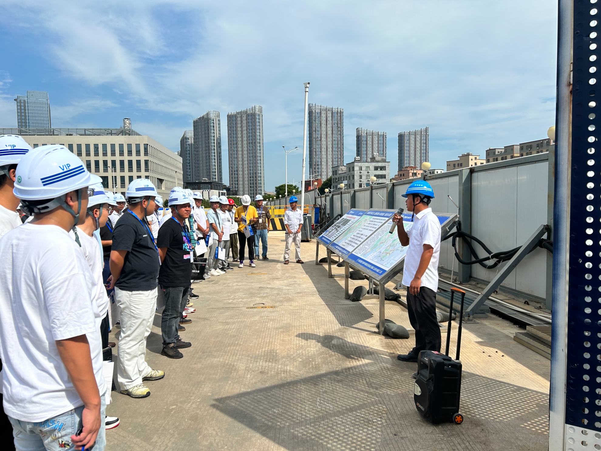 项目部负责人首先介绍了项目的整体情况以及现场进展情况,对学员开展了临时入场安全教育,强调进入工地后的注意事项;随后在项目部人员的引导下,学员进入工地集中观摩学习,项目部人员结合现场,从临电管理、设备管控、深基坑施工、生态环保、安全行为管理、盾构施工以及智慧工地建设等八个方面进行展示。在参观介绍过程中,项目部人员和学员就如何更好开展安全管理工作进行了交流,并对学员提出的问题一一解答。