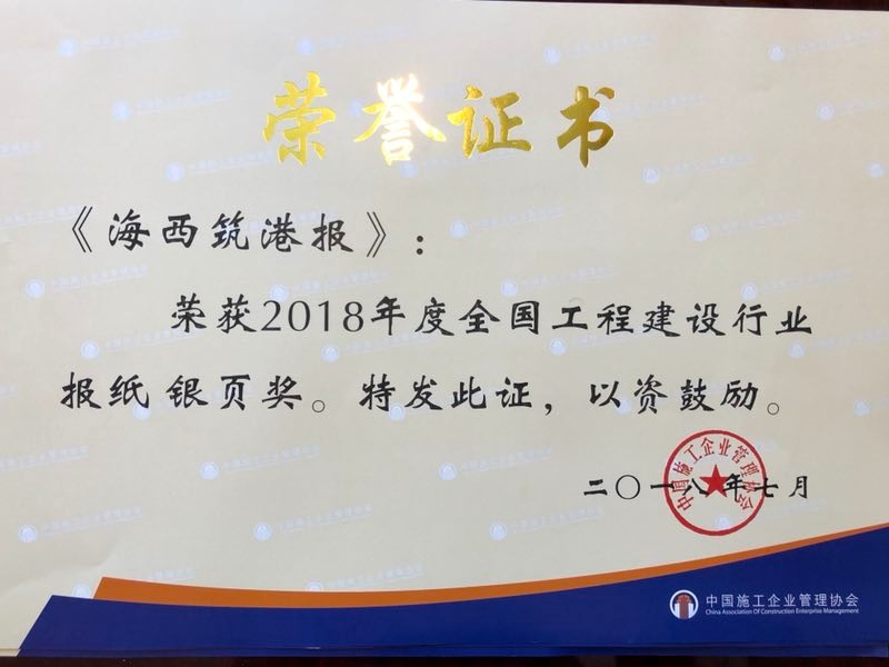 日前,从中国施工企业管理协会2018年度通联员工作会议上传来喜报,公司主办的《海西筑港》报和公司厦门地铁4号线项目部主办的《鹭岛轨迹》获评全国工程建设行业报纸银页奖。其中,《海西筑港》报已经是连续三年获此殊荣。