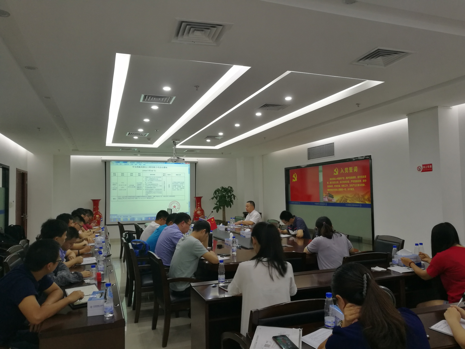 近日,公司组织召开2018年第三季度采购及法律事务业务管理例会。公司副总经理、总法律顾问龙海飚,采购部及法律事务部全体人员,项目部合约及物资人员等共29人参加会议。