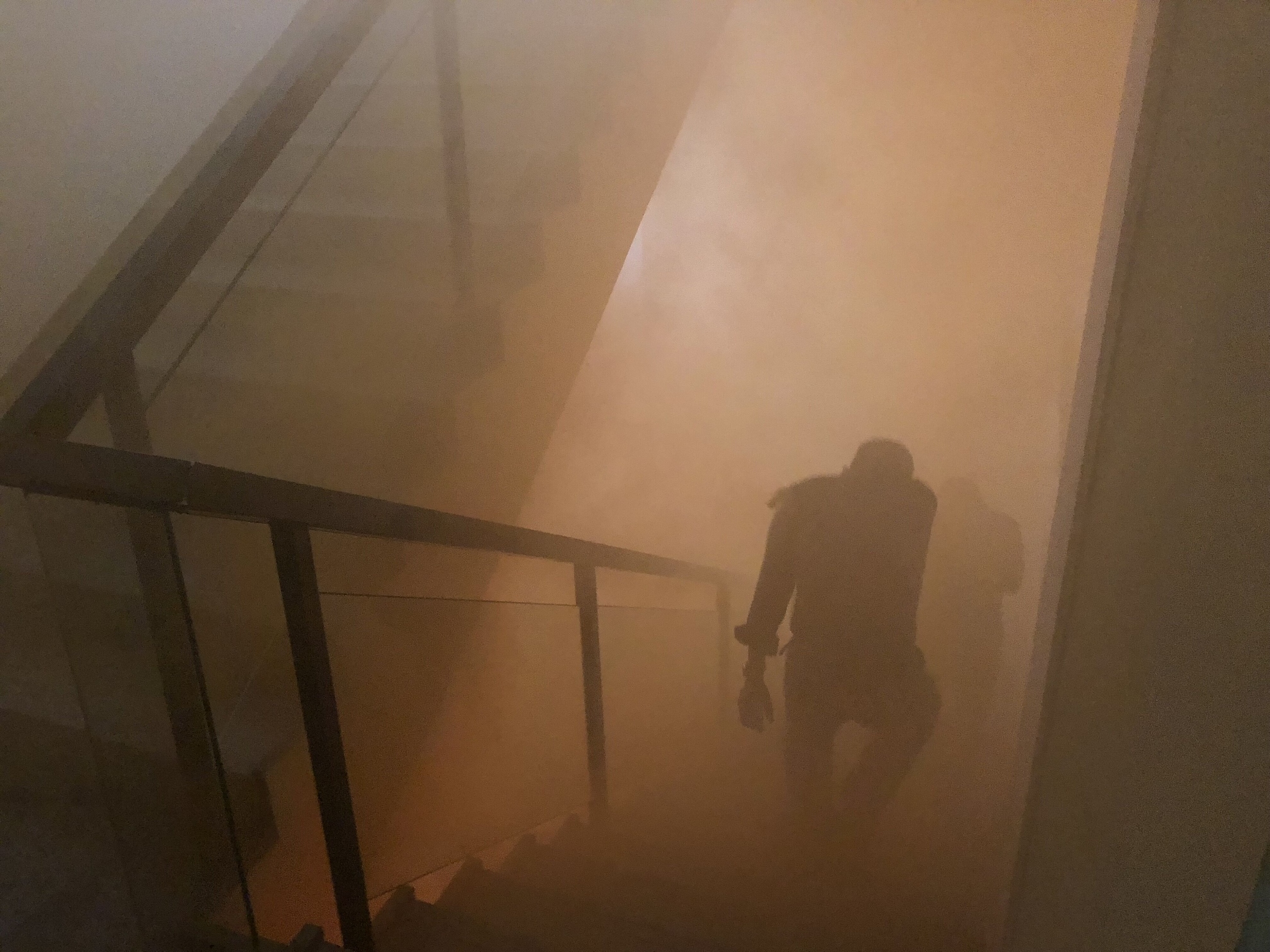 此次演练采取"演练前不提前通知"的盲演方式,模拟了3#楼突发起火,引起浓烟滚滚,触及消防探测器,警报响鸣,各部门职工根据各自楼层消防疏散路线图,采取低姿势行走或匍匐穿过浓烟区,快速撤离到篮球场安全区域集合,整个疏散过程紧张有序,演练达到了预期效果。