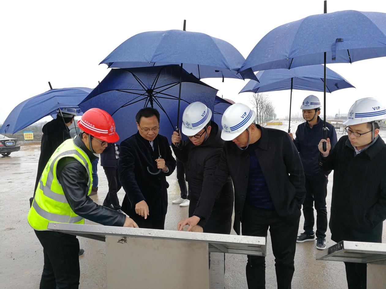 蒋国宝一行实地察看了项目施工现场、并听取了项目节后复工组织情况汇报。蒋国宝对项目部积极组织节后复工、认真做好复工前的安全检查工作给予肯定。同时提出项目建设要严把安全质量关、踏实做好开工前的各项准备工作,确保顺利推进转型示范区项目的建设工作。他强调,2019年是转型示范区项目从“夯实基础”到“初出形象”的重要一年,项目部要紧跟区政府及建设单位的战略部署,全力以赴、保证转型示范区项目的按时、保质、高效、安全地推进。