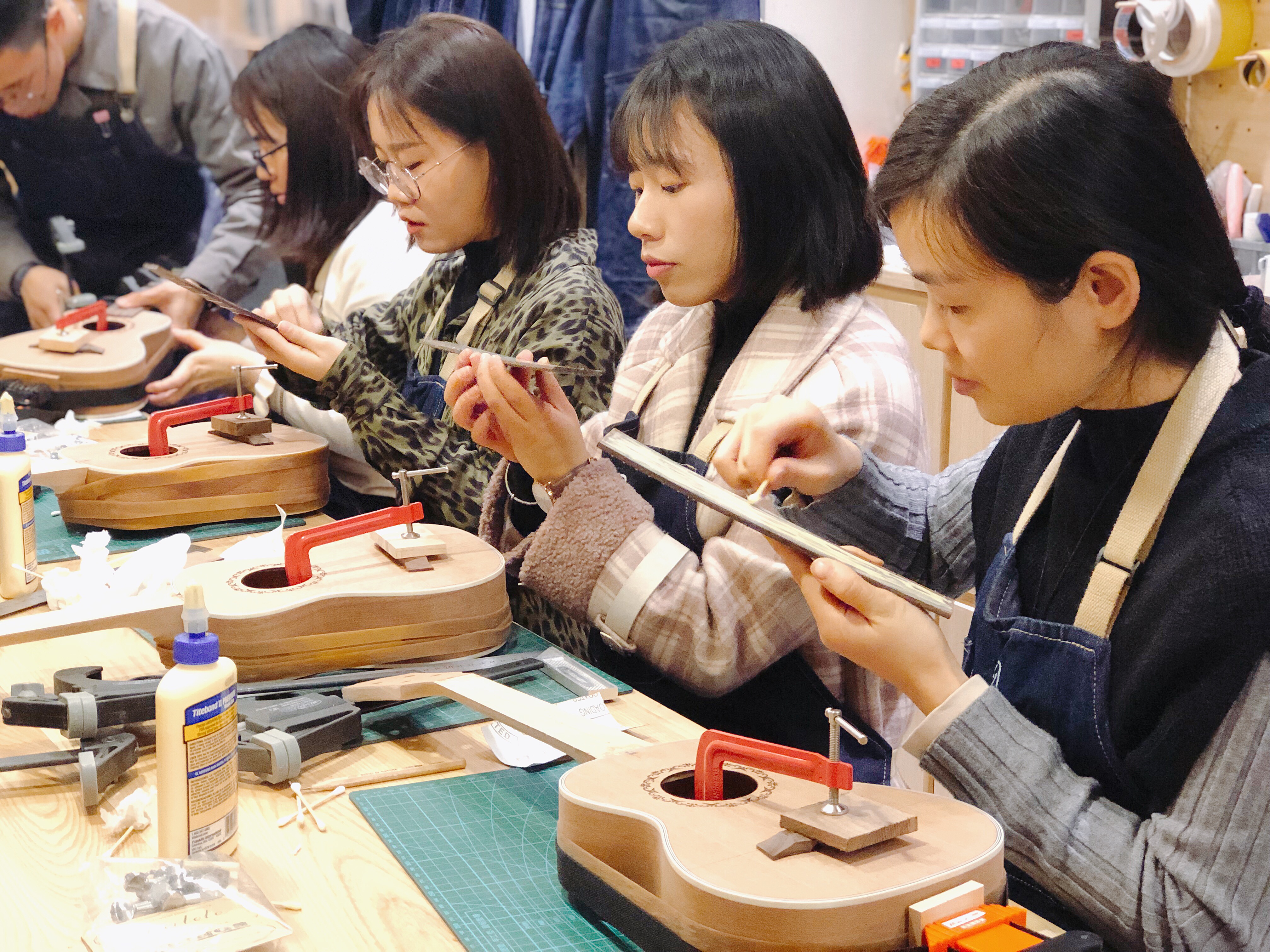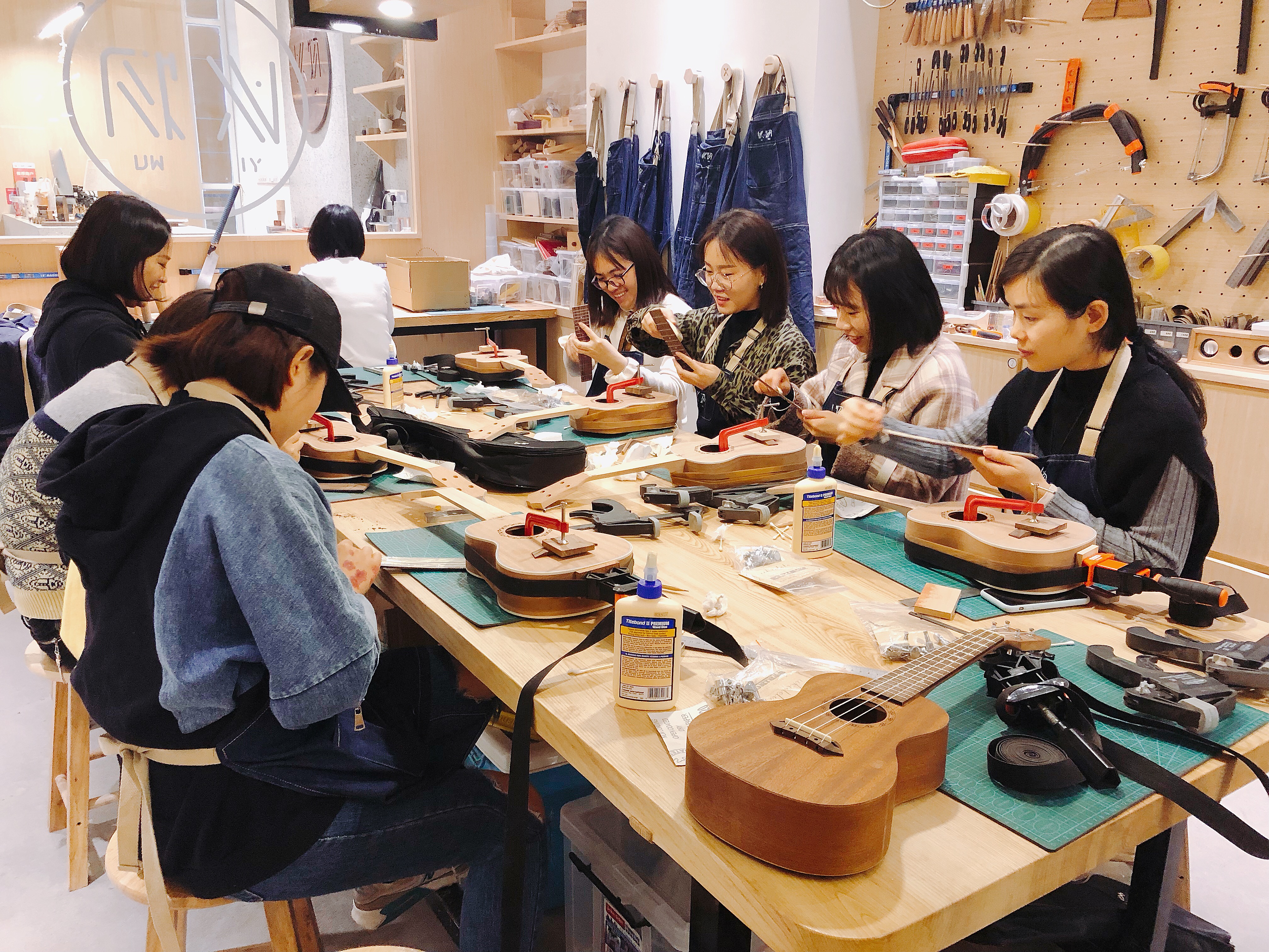 福州片区组织女职工前往以物手作体验馆制作尤克里里,制作过程中项目部的女职工们相互协作,在尤克里里的优美音乐声下,女职工的欢声笑语显得更为动人。手作活动结束后,进行了会餐,最后活动在一片融洽的氛围中圆满结束。