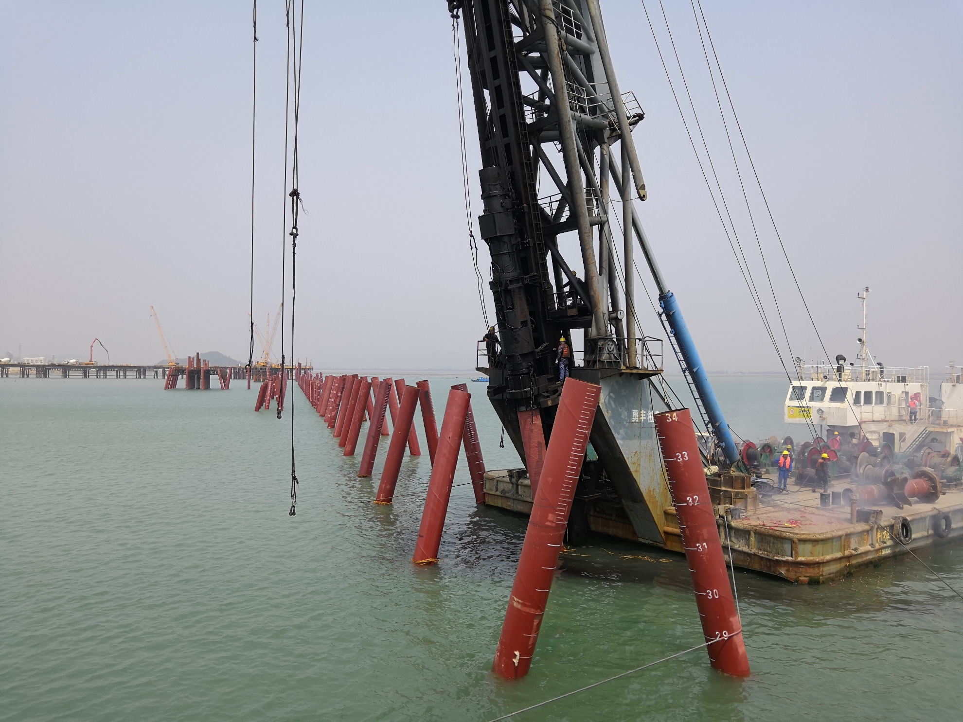 3月28日,中化泉州乙烯项目完成最后一根钢管桩沉桩施工,项目施工实现了从水下到陆上的跨越,标志着码头进入全面上部结构施工阶段。