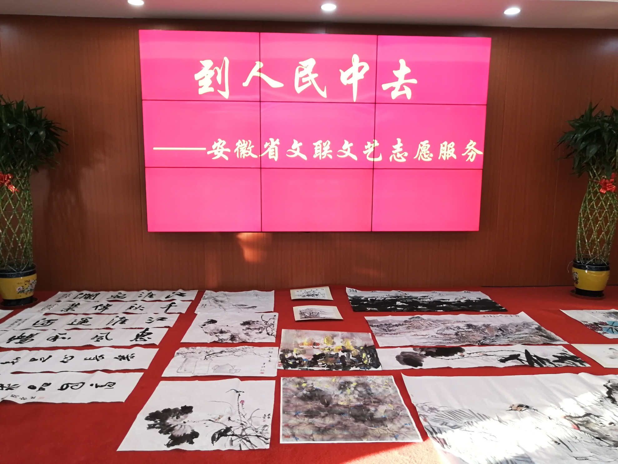 5月23日下午,安徽省美协主席杨国新、安徽省美协常务副主席丁寺钟等一行12人走进安徽引江济淮项目部,开展了“到人民中去”——安徽省文联文艺志愿服务活动。合肥市引江济淮投资有限公司董事长陆勤山、合肥建管处副处长曹红武等参加此次活动。