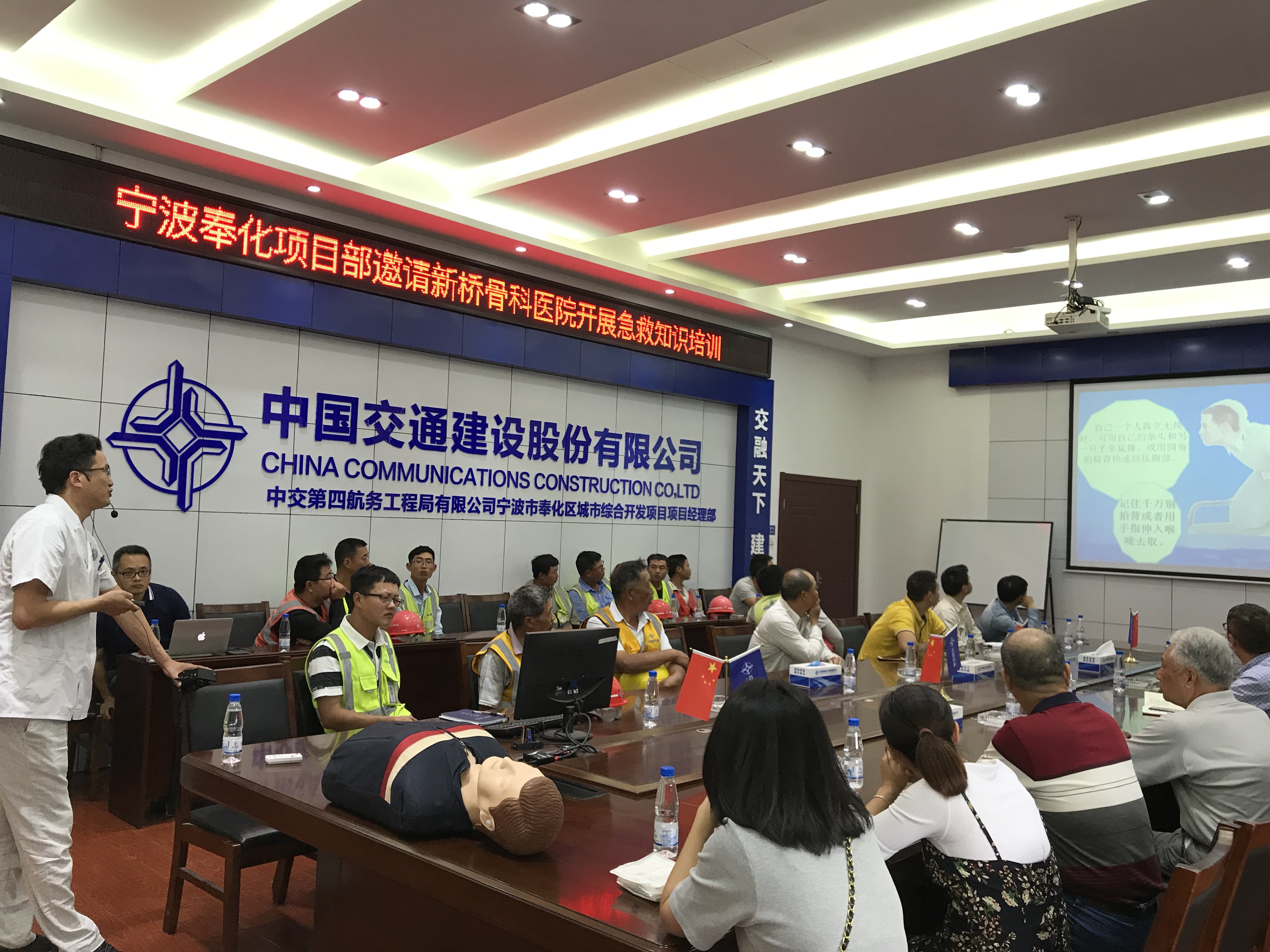 宁波奉化项目部邀请奉化新桥骨科医院李畅昂主任等医疗专家为项目部人员及施工人员上了一堂生动的理论+模拟实践急救知识讲座,知识培训讲座,理论结合实践,内容通俗易懂实用,通过系统学习,进一步规范了员工的心肺复苏术操作方法及急救流程,提高了应对突发事件和意外伤害的应变能力,增强大家的安全意识,对下一步工程的安全推进具有积极意义。(罗阿龙)