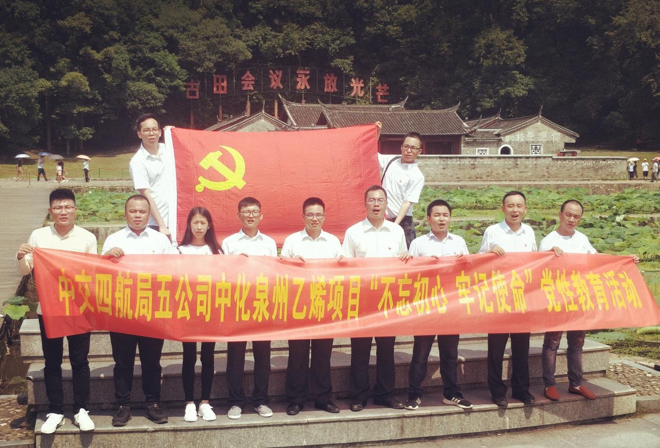 中化泉州乙烯项目党支部组织全体党员及积极分子前往古田会议旧址开展“不忘初心、牢记使命”党性教育活动。大家参观了古田会议纪念馆,身临其境了解了古田会议召开的时代背景和重大意义,学习古田会议精神,重温了入党誓词。通过此次教育活动,大家纷纷表示,要把老一辈的艰苦革命精神应用到工作中去,要为公司项目建设出一份力,发一份光。(黄世镛)