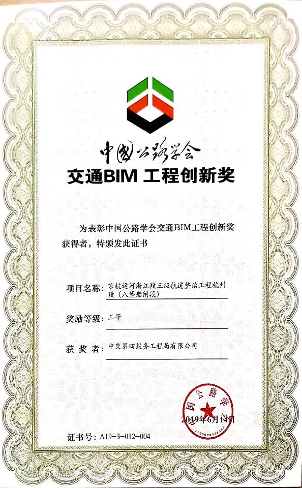 近日,公司杭州项目部荣获中国公路学会颁布的交通BIM工程创新奖三等奖。