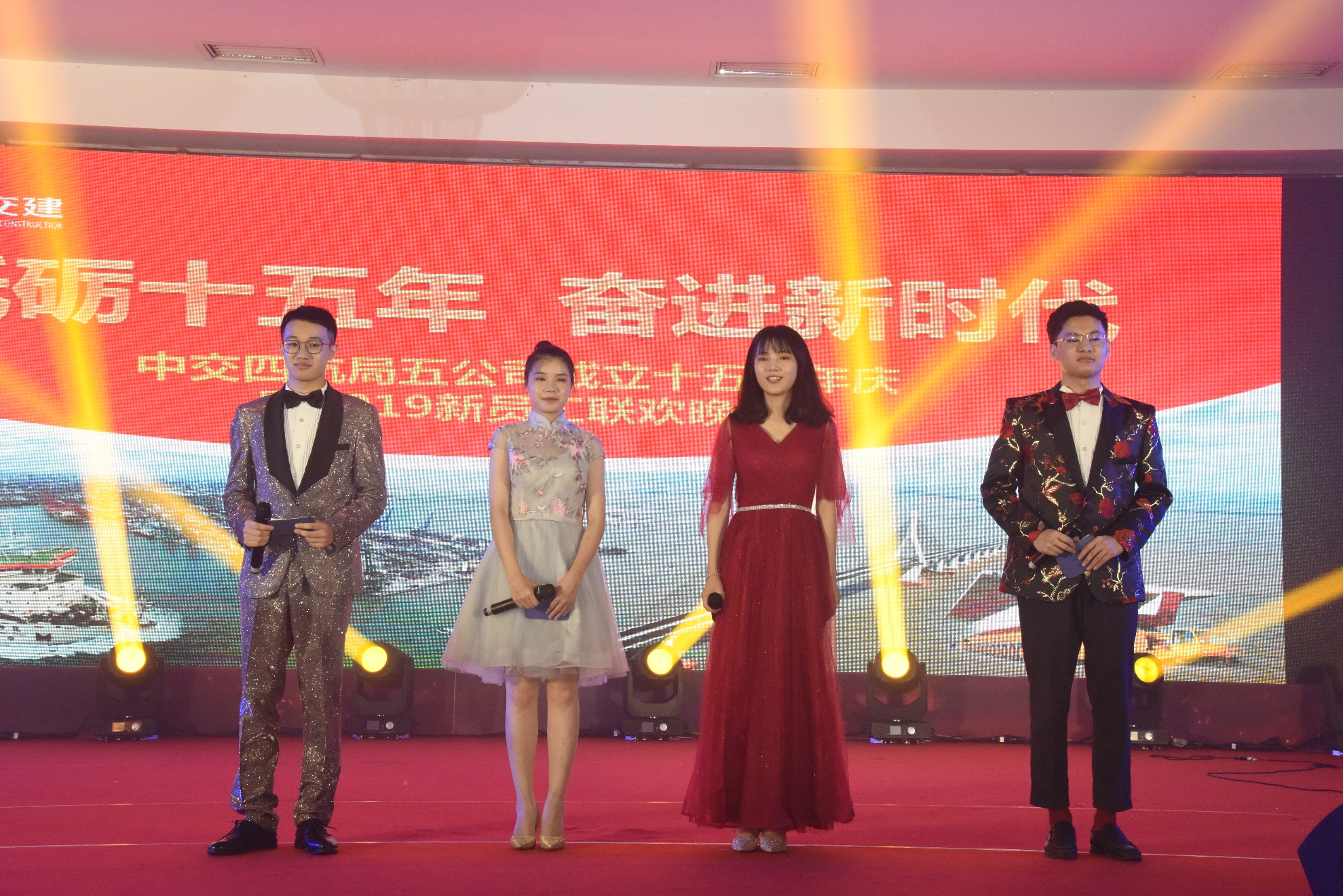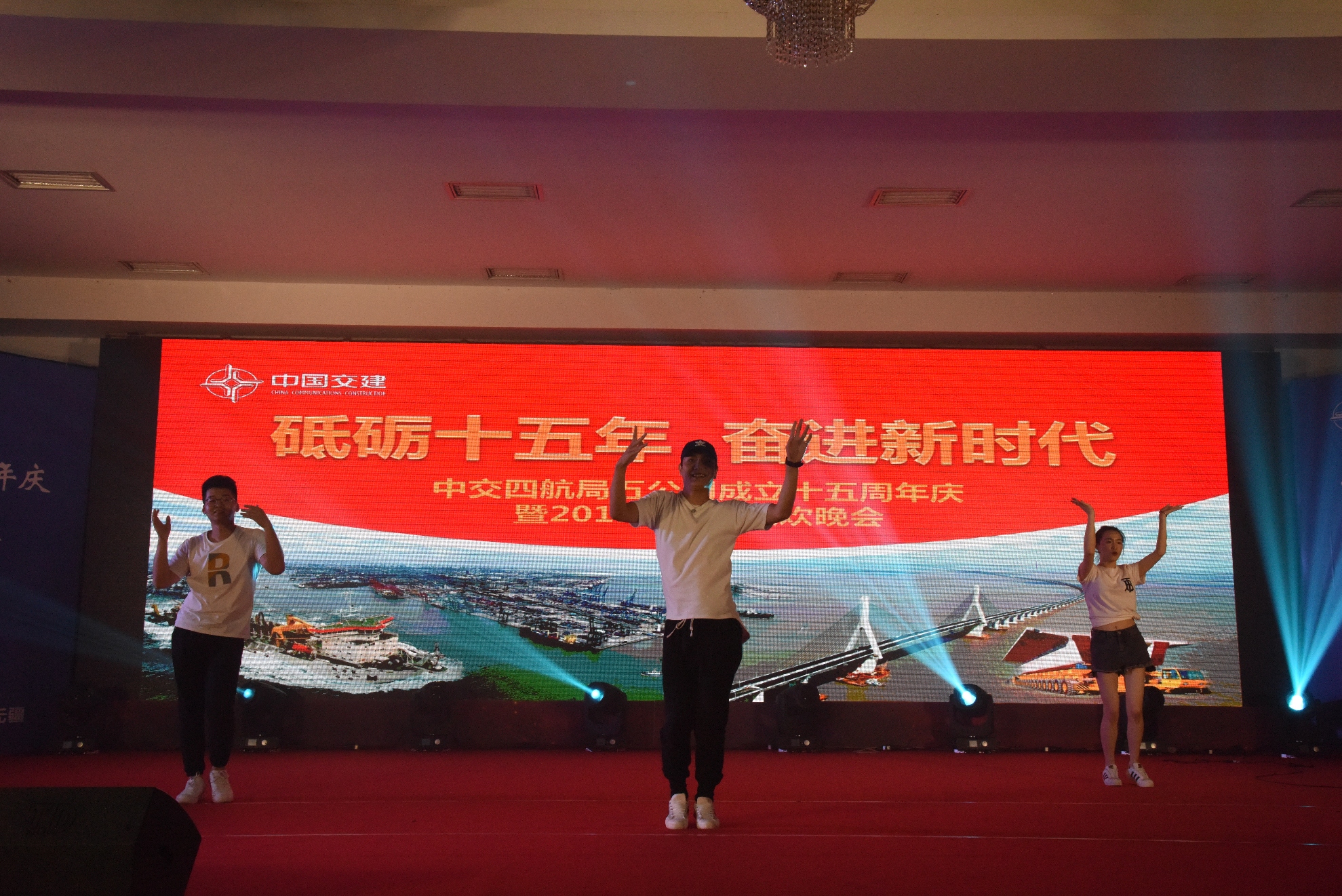 领导讲话结束后,在歌曲《四航情》优美的声音里,由新老员工自编自演的晚会节目正式上线。《夸夸四航五》、《十五周年风帆正劲》、《新闻歪报》等节目表达了对公司十五周年的庆祝和赞美,《春光最美、美不过筑港人》、《我是中交人》、《工匠精神》等展现了建设者不一样的情怀;《我爱你中国》、《精忠报国》抒发了建设者浓浓的爱国情怀,《平凡之路》、《海芋恋》、《兔子舞》、《阵线联盟》《魔术》等节目吸引了现场观众的喝彩,展现了公司员工多才多艺和良好的精神风貌。最后,晚会在欢快喜庆的氛围中落幕,新老员工纷纷表示,将进一步立足岗位,强化担当,奋发进取,努力拼搏,为公司做优做大作出自己应有的更大贡献