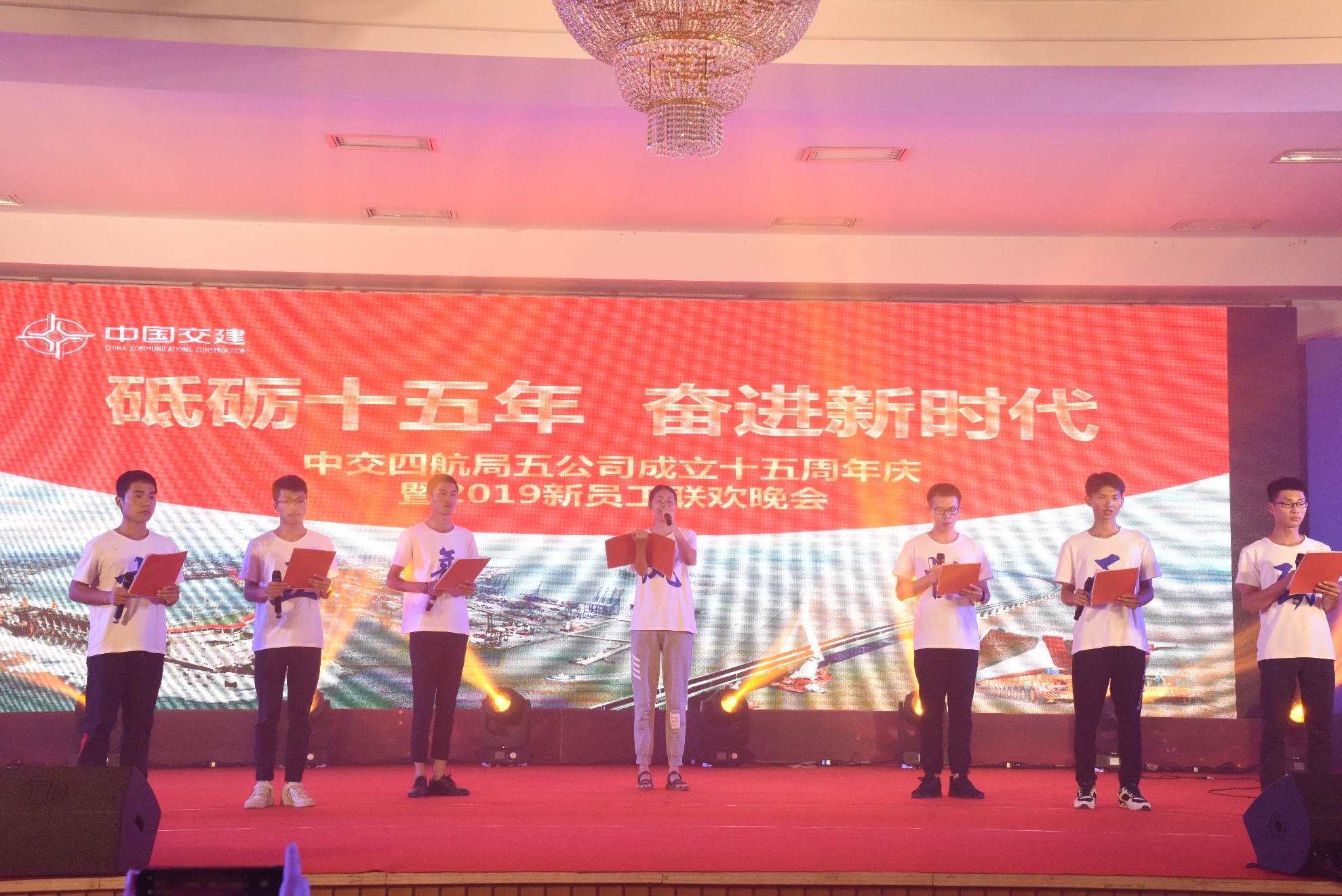 十五年栉风沐雨,十五年春华秋实,今年是公司成立十五周年,7月21日,公司举办“砥砺十五年 奋进新时代”中交四航局五公司成立十五周年庆暨2019年新员工联欢晚会。公司总经理卢书明、党委书记居治安等领导班子,各项目有关负责人、团干,本部员工及员工家属,2019全体新员工等参加晚会。