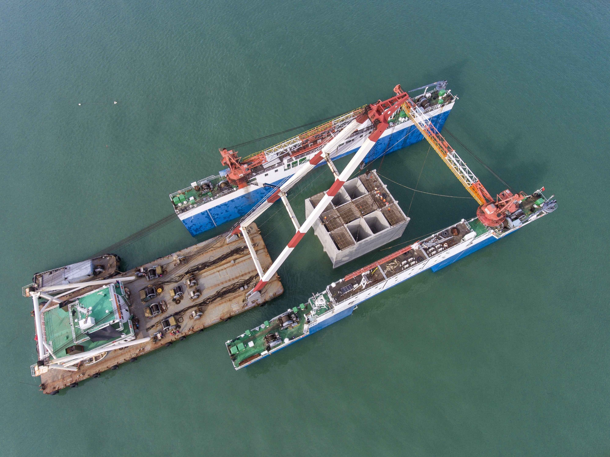 8月19日,随着最后一件沉箱安装完成,标志着石湖5号和6号泊位工程顺利完成沉箱安装阶段性施工任务。