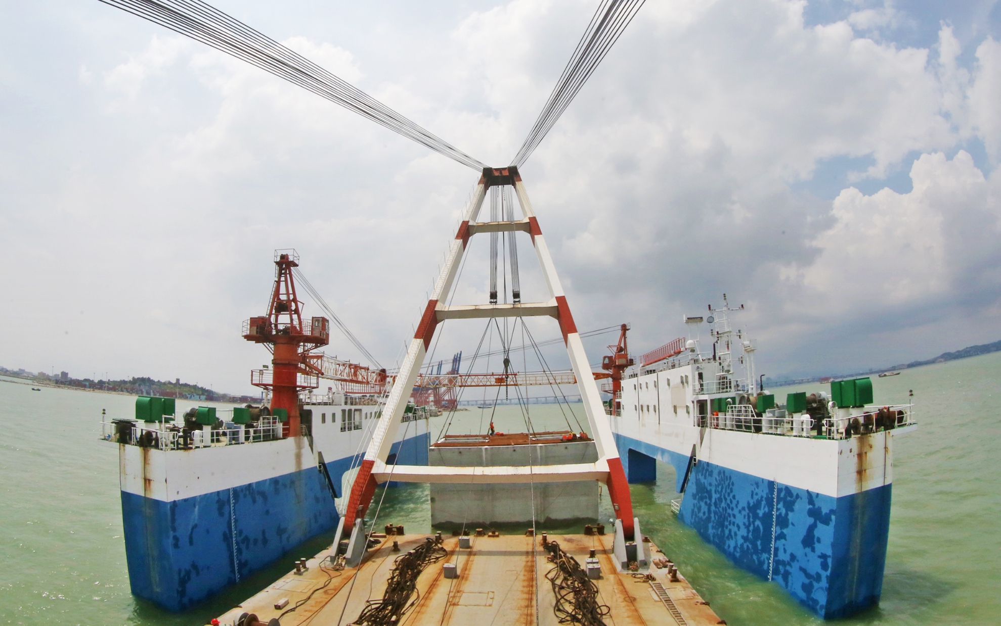 石湖5号和6号泊位沉箱采用重力式沉箱结构形式,共设计有甲乙两种型号沉箱共计43件(甲型沉箱42件,乙型沉箱1件),全部采用气囊出运,由“四航广州号”半潜驳拖运,起重船吊装的施工工艺进行安装。施工过程中,项目全体员工迎难而上,科学统筹,严格控制施工过程,克服了水文条件复杂和季候风、台风、暴雨等恶劣天气的诸多不利因素影响,确保安全生产和质量合格,圆满完成了沉箱安装施工任务。