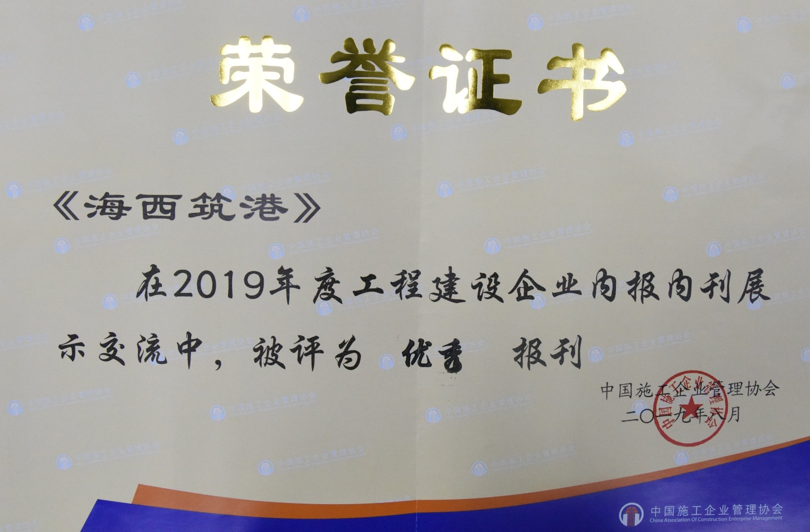 近日,在2019年度全国工程建设行业企业文化交流大会上,公司主办的《海西筑港》报和公司厦门地铁4号线项目部主办的《鹭岛轨迹》获评优秀报刊。