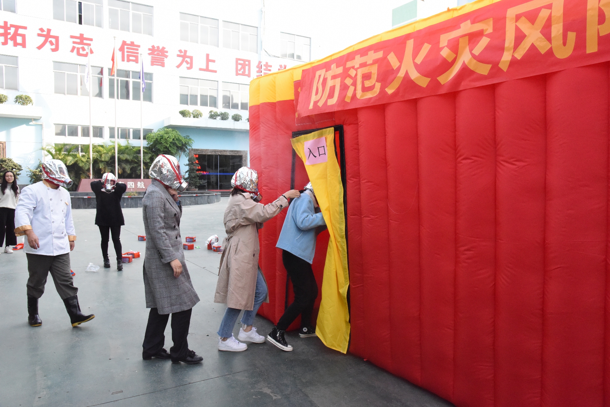 此次演练真实模拟了1#楼204因手机充电器线路故障引发火灾,现场浓烟滚滚,触及消防探测器,警报响鸣的场景。演练中,各职工根据不同楼层的消防疏散路线图,采取低姿势行走或匍匐穿过浓烟区,快速撤离到篮球场的安全区域集合。集合完毕后,由消防维保公司负责组织模拟逃生屋体验,参加演练人员逐个有序地体验模拟逃生屋,身临其境感受火灾现场,进一步提高了演练的真实性。演练结束之后,还开展了消防安全培训,重点学习了遇到突发火灾时,如何选择正确的逃生方法、充分利用逃生器材、设施和逃生过程中的防烟措施。培训还示范了灭火器的使用方法,并通过视频、照片等真实案例,进一步提高在岗职工对消防安全工作重要性的认识。