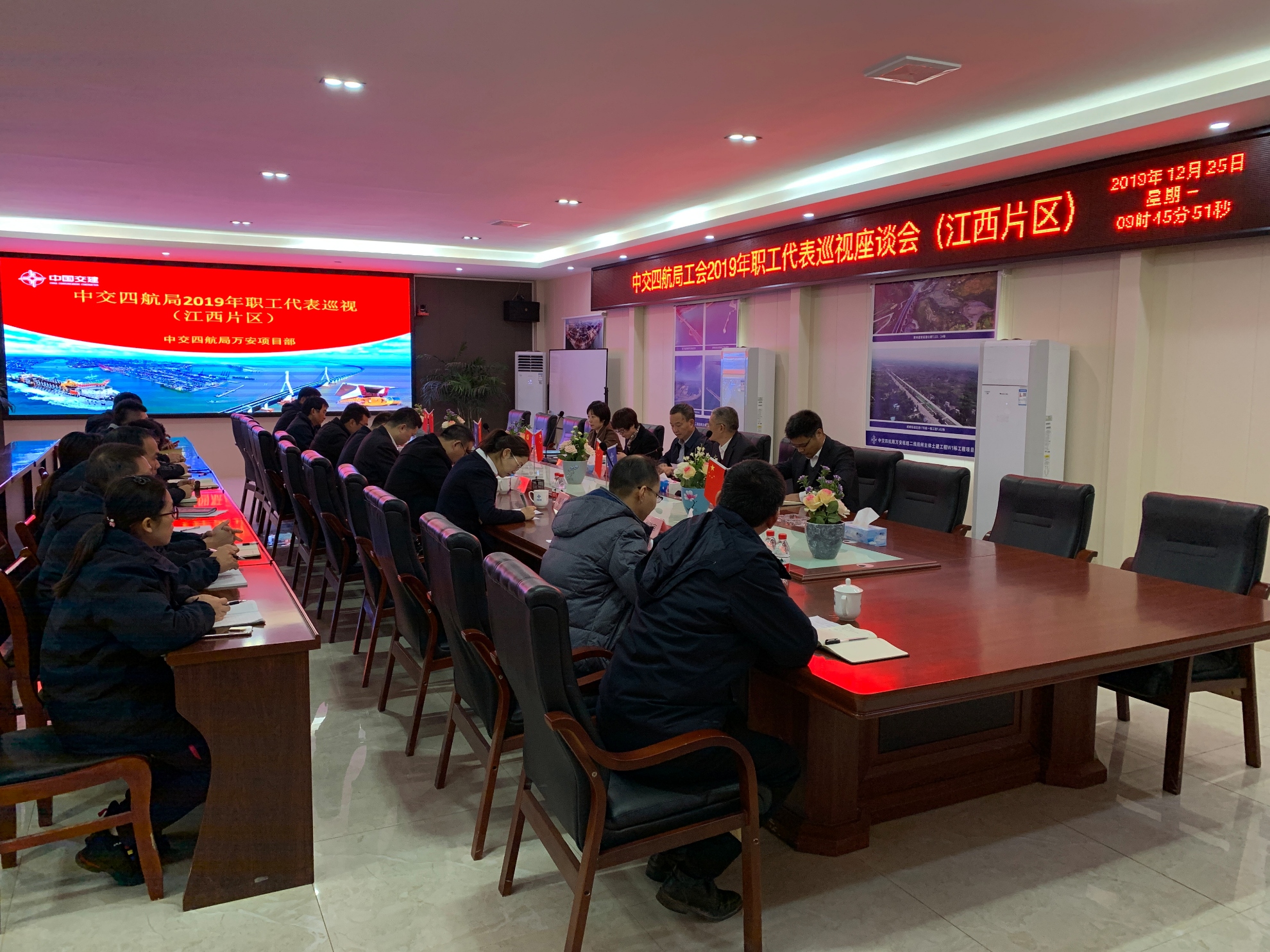 12月25日,四航局党委副书记、工会主席曾瑞雄带领职工代表巡视组,到万安项目部开展2019年度江西片区职工代表巡视活动。四航局工会副主席、工会办主任陈东港、四航局人力资源部副总经理范春梅、党委工作部副部长刘洪亮,公司党委书记、工会主席江雄,三公司党委副书记、工会主席吴海飞以及三公司、五公司职工代表等参加了巡视活动。