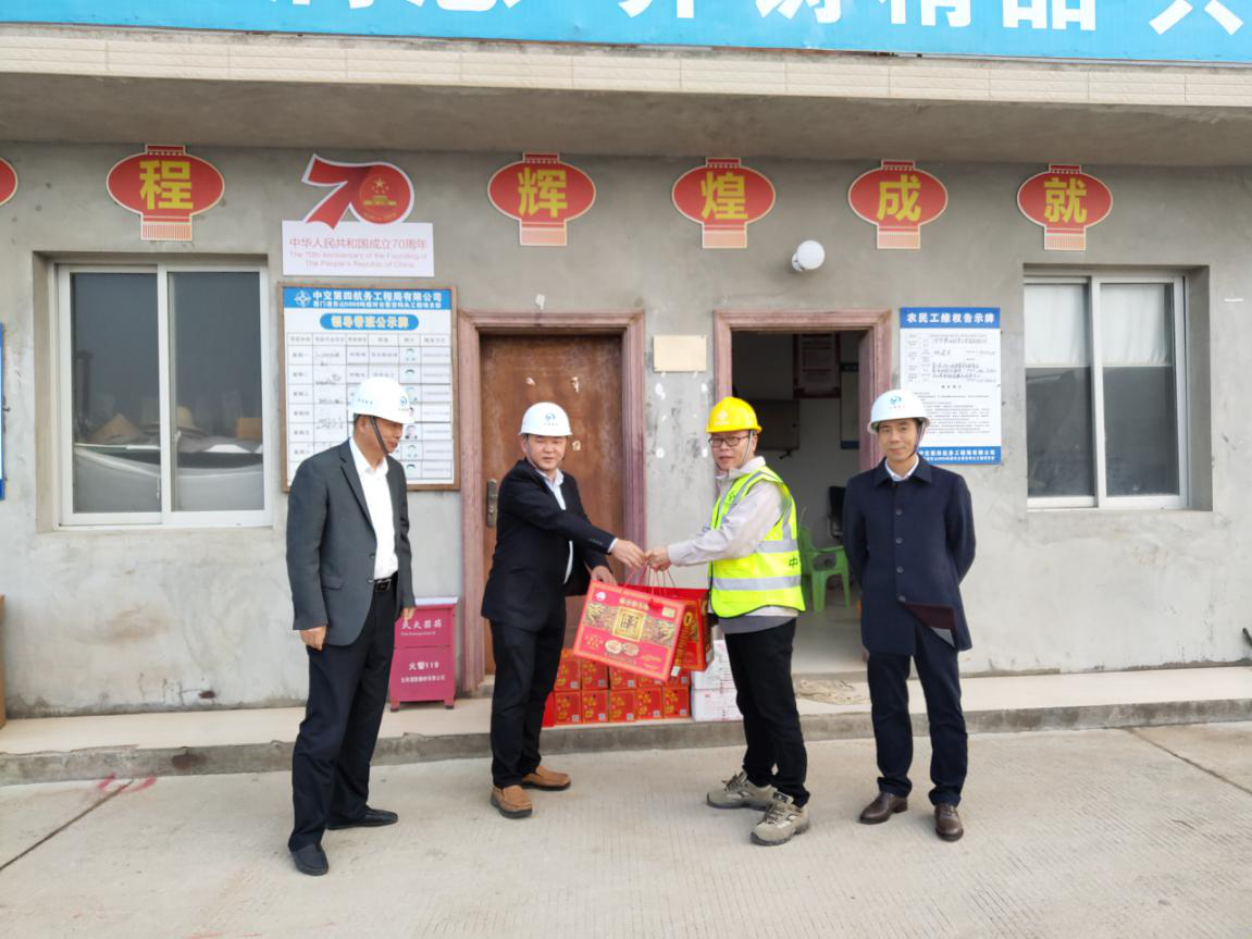 1月15日,漳州市交通发展集团总经理助理吴庚晨带队到公司东山对台客货码头项目部开展春节前慰问活动,为项目员工发放了新春慰问品,并代表交通发展集团向员工们致以诚挚的问候与新春祝福。