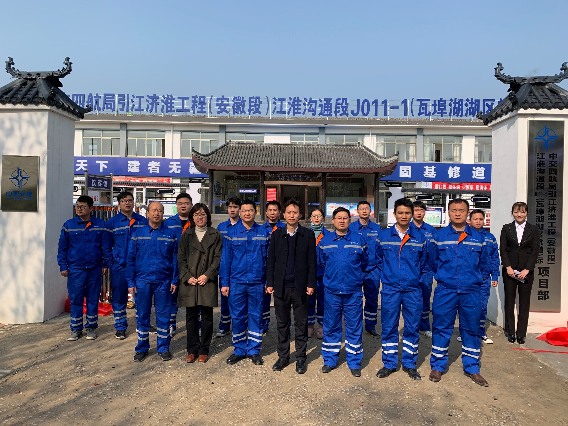 4月2日,引江济淮工程(安徽段)江淮沟通段J011-1(瓦埠湖湖区航道)标项目部举行驻地营区揭牌仪式,公司总经理居治安出席仪式,公司办公室负责人、项目全体人员参加仪式。