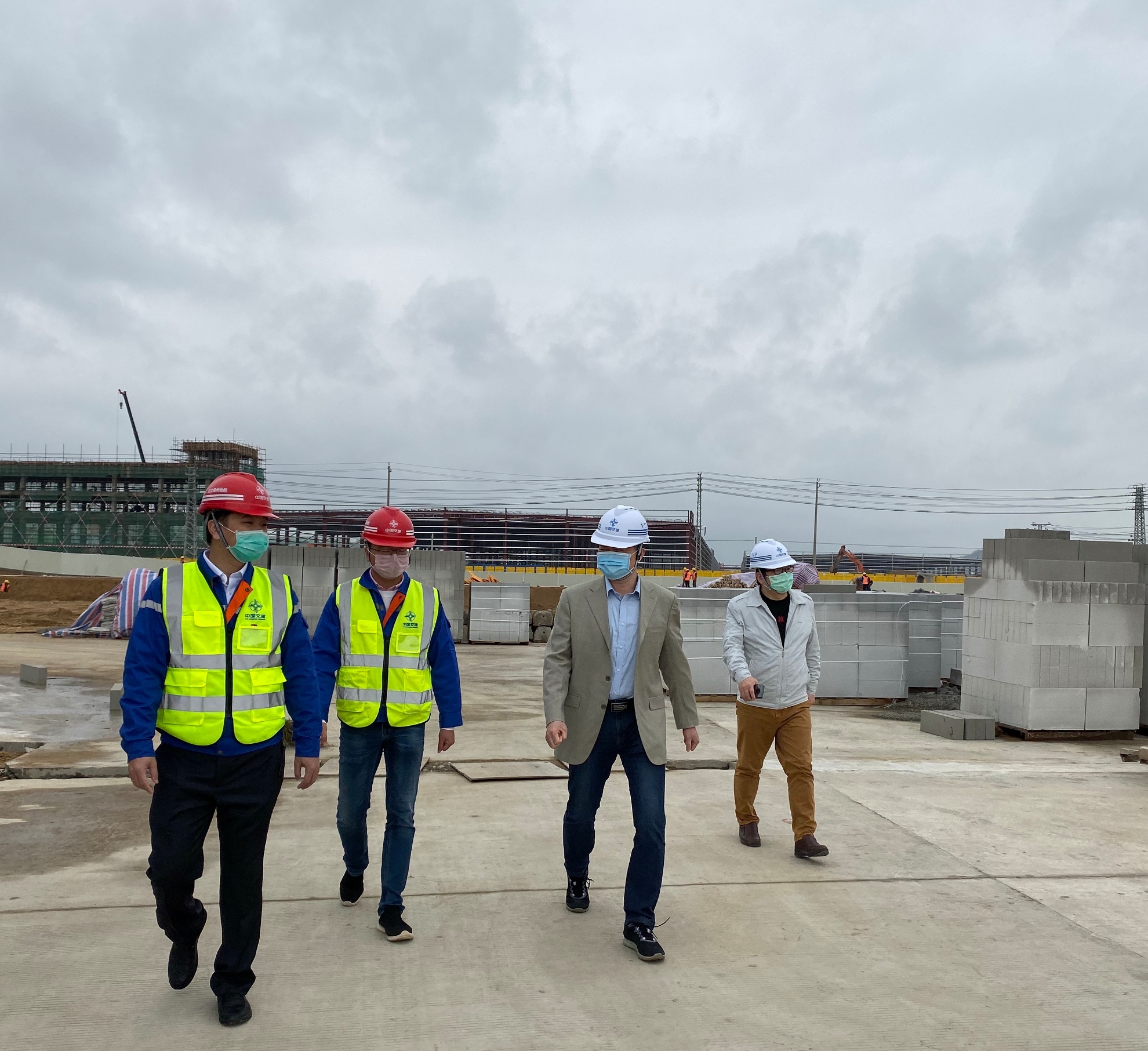 江雄一行实地查看了项目施工现场,听取了项目负责人关于施工进度、安全质量、关键节点把控、设计出图以及物资采购等情况的汇报。