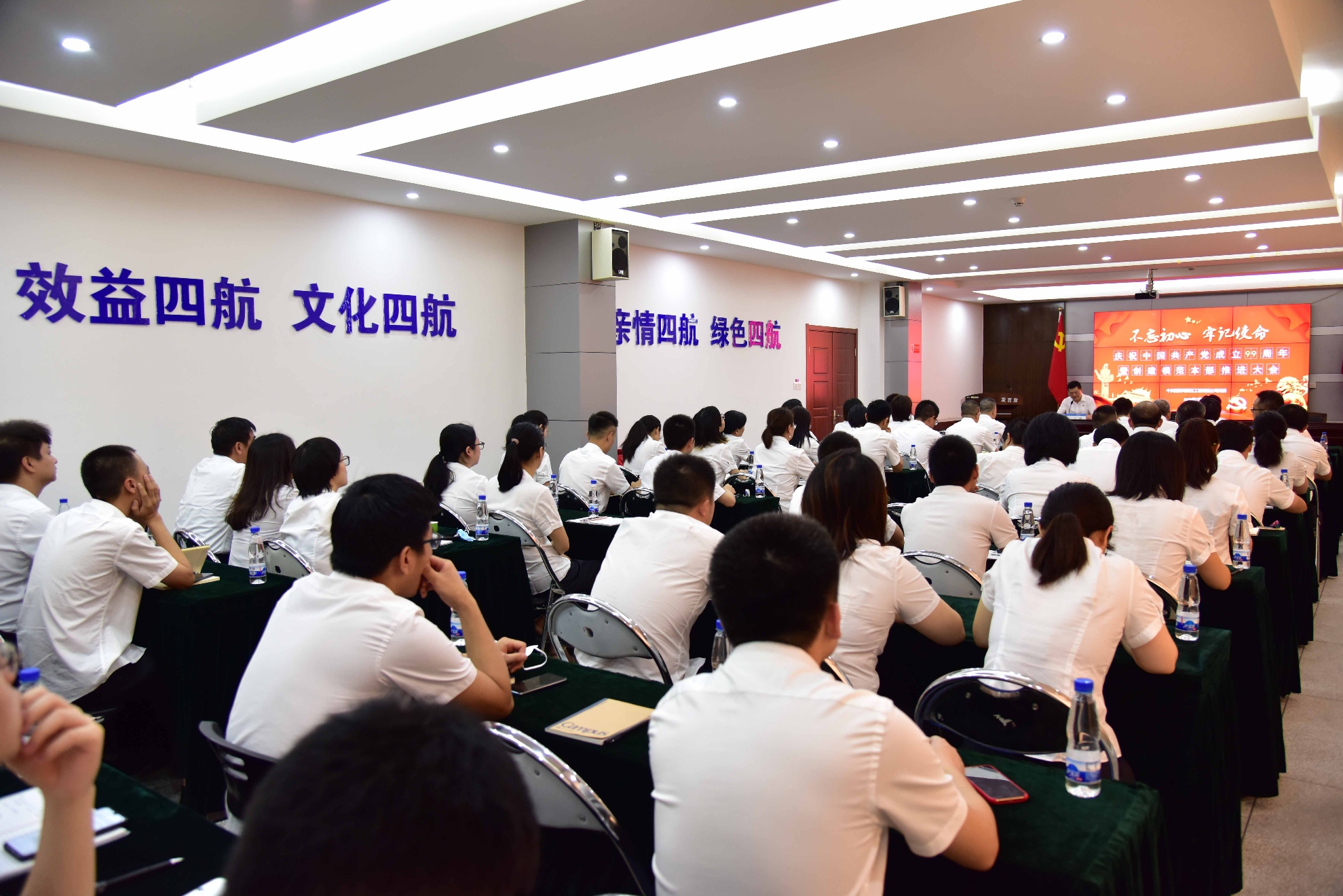 7月1日上午,公司党委在本部召开庆祝中国共产党成立99周年暨创建模范本部推进大会。公司党委书记江雄主持会议,公司在家领导居治安、龙海飚、刘杰锋、于广涛,公司本部全体党员、全体员工及司属单位党员和员工代表等参加了会议。