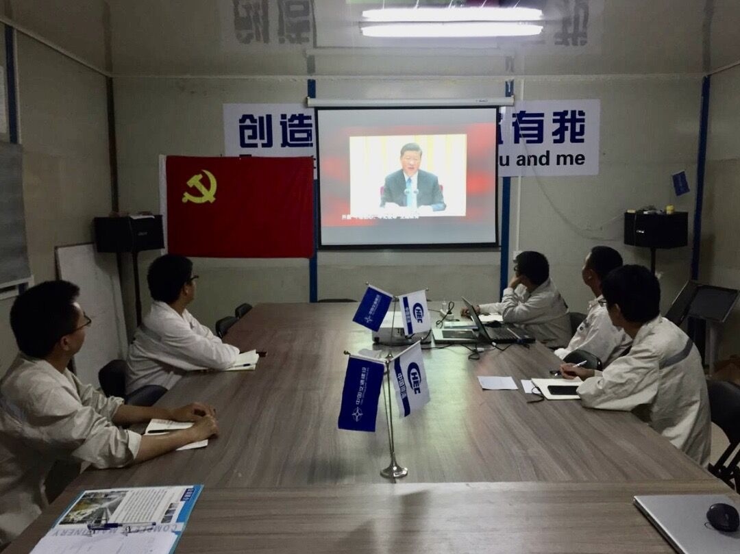瑙鲁项目党支部组织全体党员、积极分子重温入党誓词、讲微党课、观看专题教育片《榜样》,激发了广大党员不忘初心、牢记使命、真抓实干、干事创业的斗志和热情。(尹国强)