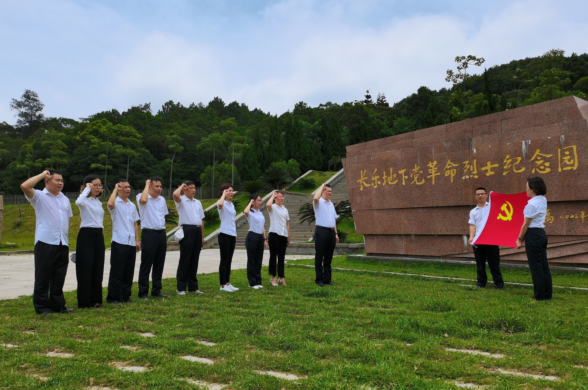 江雄带领大家重走了红军路,参观了中国长乐革命史馆、中共福建省委旧址和长乐地下党革命烈士纪念园等历史遗址。这些历史遗址及其丰富的图文史料展示了中国共产党在福建省的光辉历程,以及中国近现代发生在长乐的革命斗争历史事件和人物,展现了中华儿女不畏强暴、英勇抗争的革命精神。活动最后,全体党员在长乐地下党革命烈士纪念园庄重宣誓,重温入党誓词。
